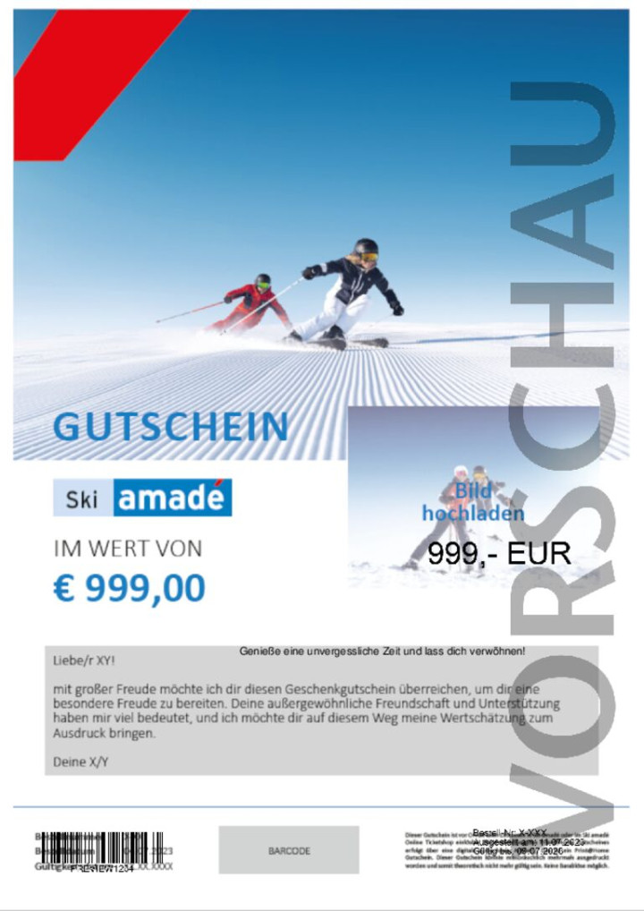 Print your voucher directly at home, immediately after purchase. Choose a value and voucher template and personalize your voucher with a dedication message and a foto.